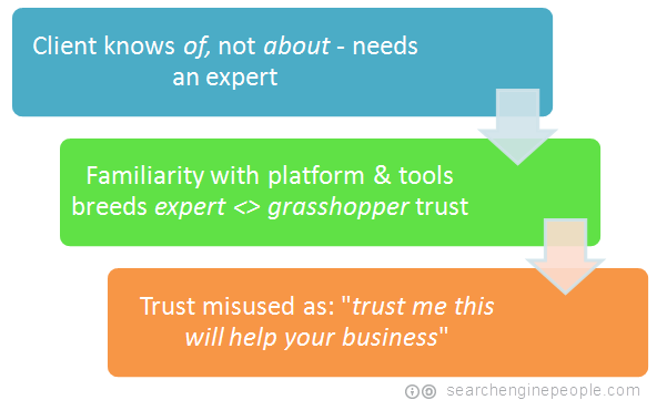 This trust me, believe me is then taken to the next level, the one of douchebaggery: just as you don't know and understand the tools and the platform, so you don't understand how their use effects your business goals, so just believe me