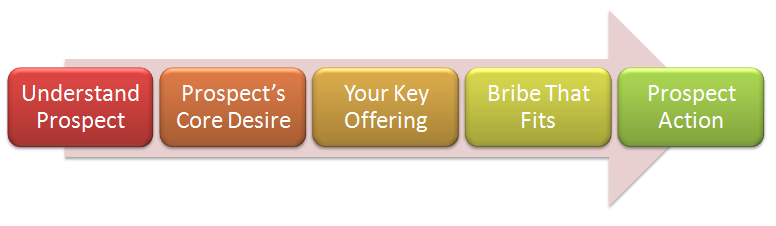 - Content: Useful, free content that actually helps the prospect. If you're in entertainment, then entertaining them is helping them- otherwise, the free content should solve a problem or help the prospect get closer to their desire.