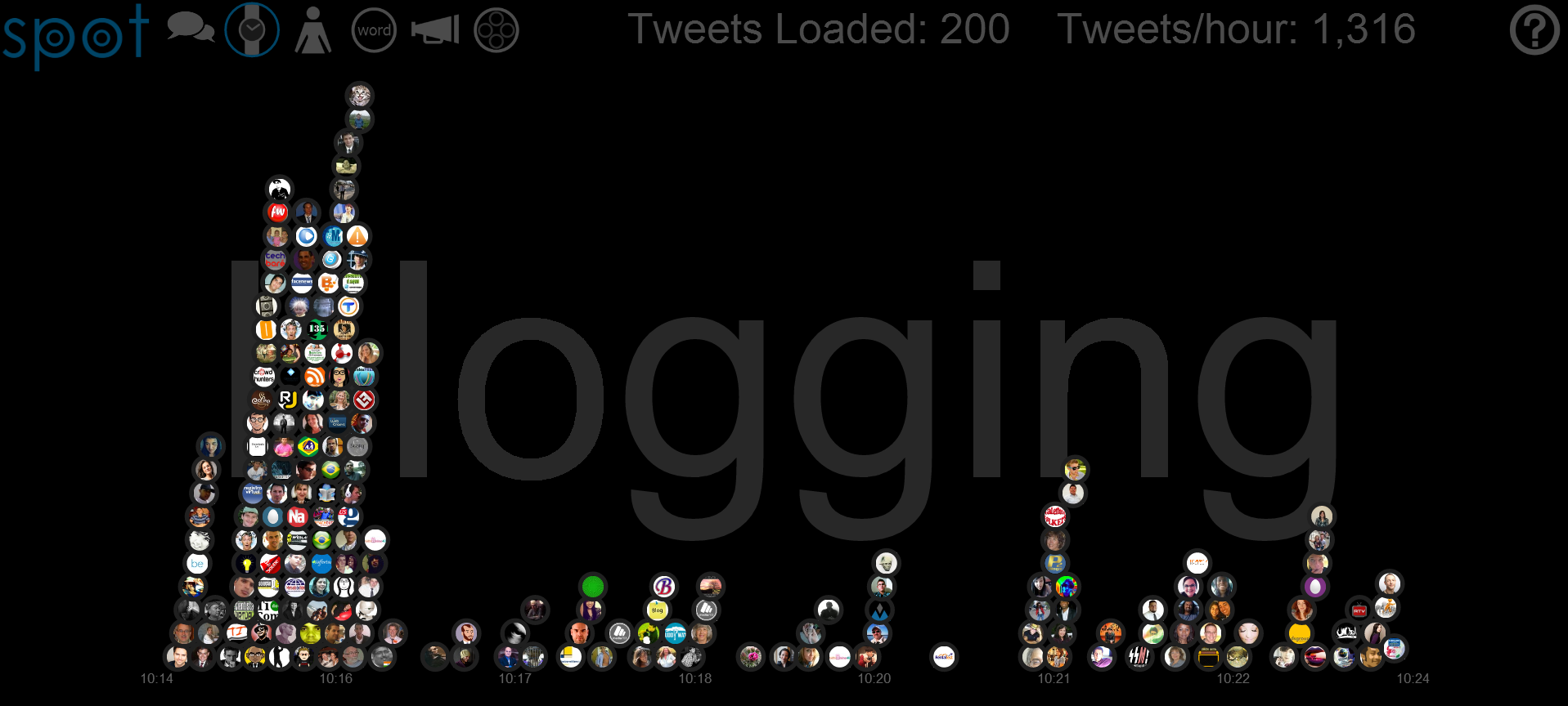When I first discovered Spot I wasn't really sure what to do with it, but since reading a little more about how to use it and spending more time playing around, I can see that it's actually an extremely powerful tool! Spot maps out individual tweets as particles, which arrange themselves in different formations depending on the options you have chosen. Start by entering a topic, a username, or even a list. Cycle through the different buttons at the top to view the tweets by "banner view," timeline, user, related words, source, or group. Click any circle to view its tweet. If you idle, random tweets will display. Spot updates in real time.