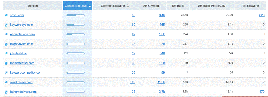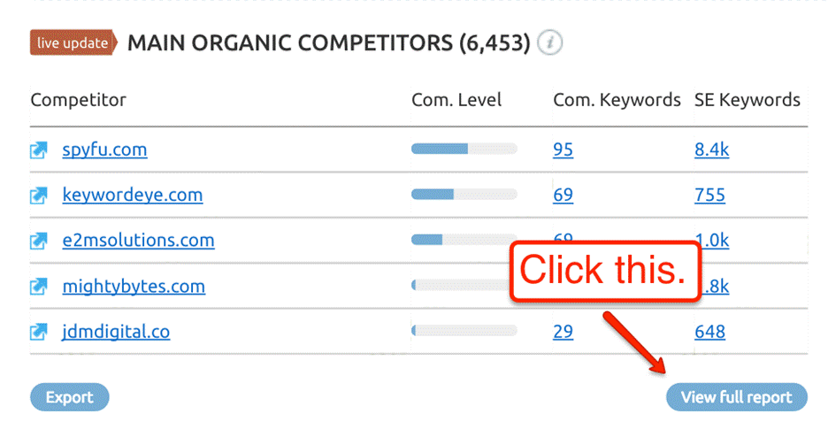 When you click the “Full View Report” button, you’ll see a longer list of who your competitors are.