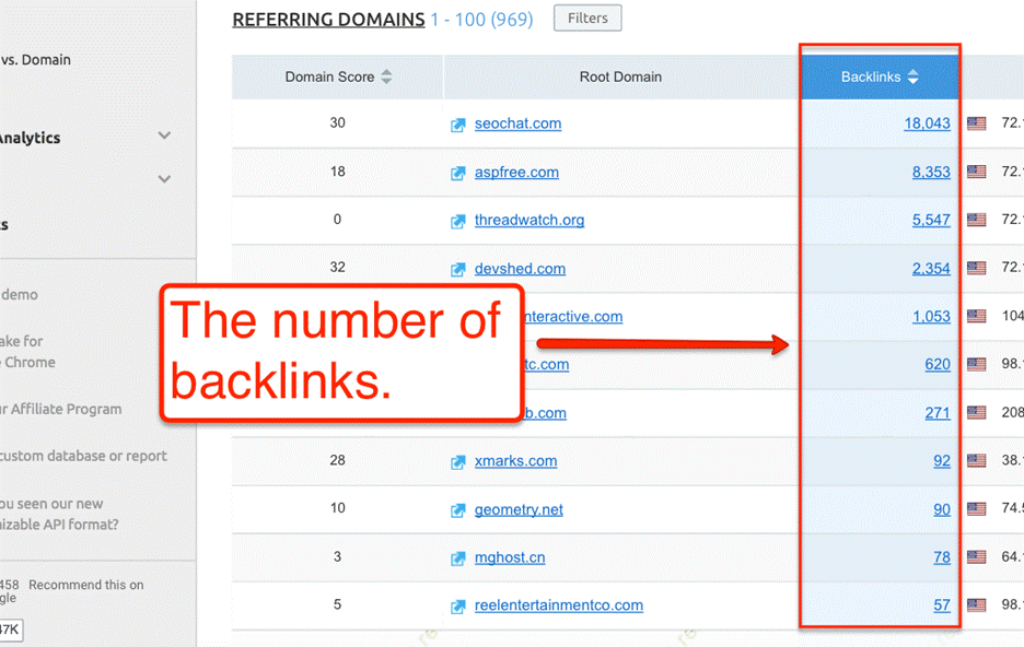 At this point, all you need to do is take note of the referring domain with the most backlink to your competitors, since there is a good chance that these sites are the ones sending the most traffic to your competitor’s websites.