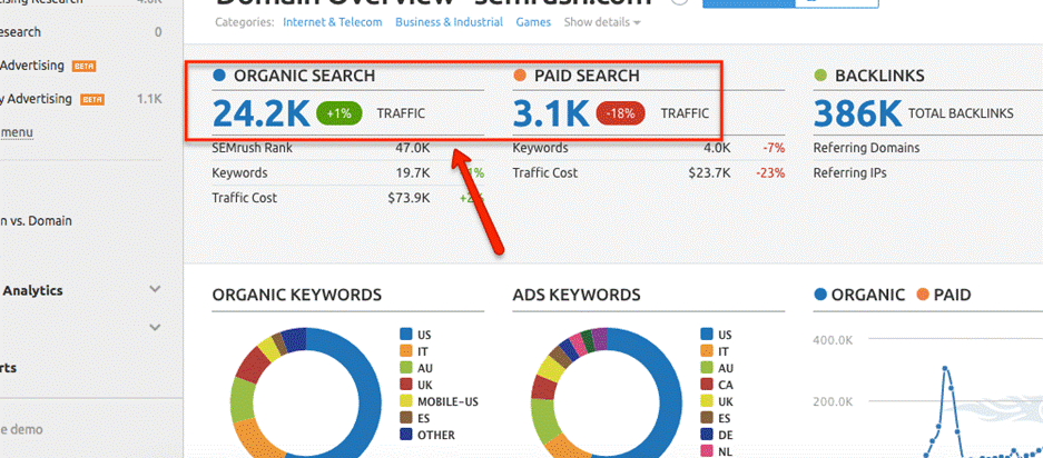 To view their monthly visitors, you can check out the “Organic Search” section on the top left part of the page.