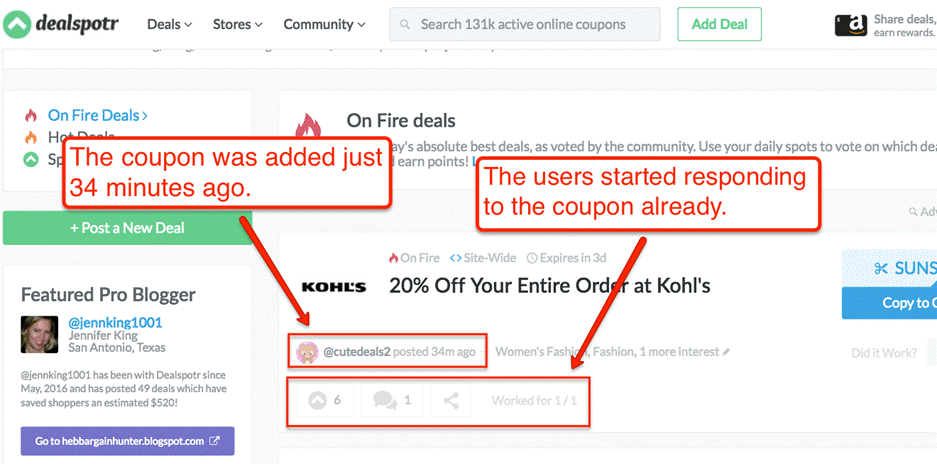 This is a classic example of how engaging the user base are of discount coupons sites. They are usually the type who share to their community, and they also leave their feedback/votes, or comments about the offers posted.