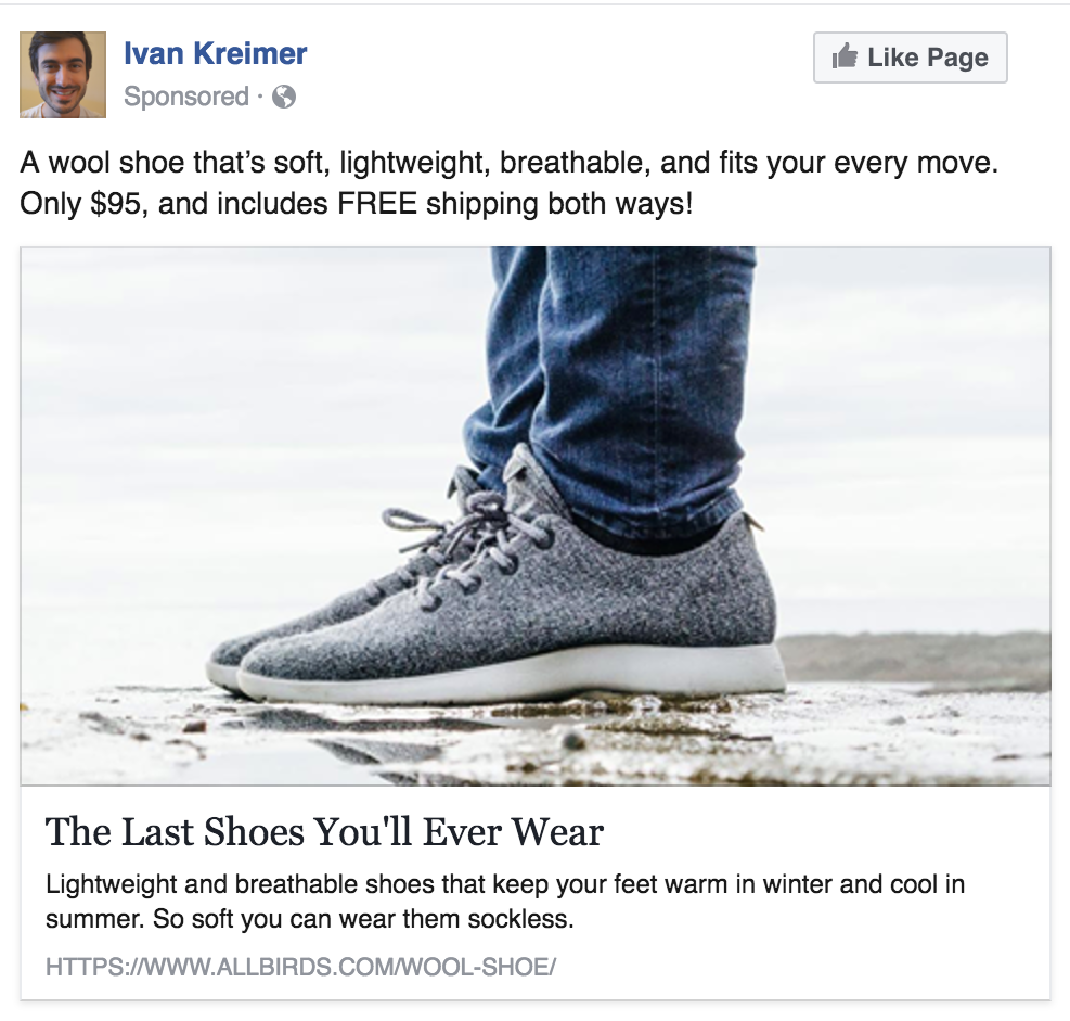 2. The indirect headline: Shoes You Want to Wear or The Last Shoes You'll Ever Wear