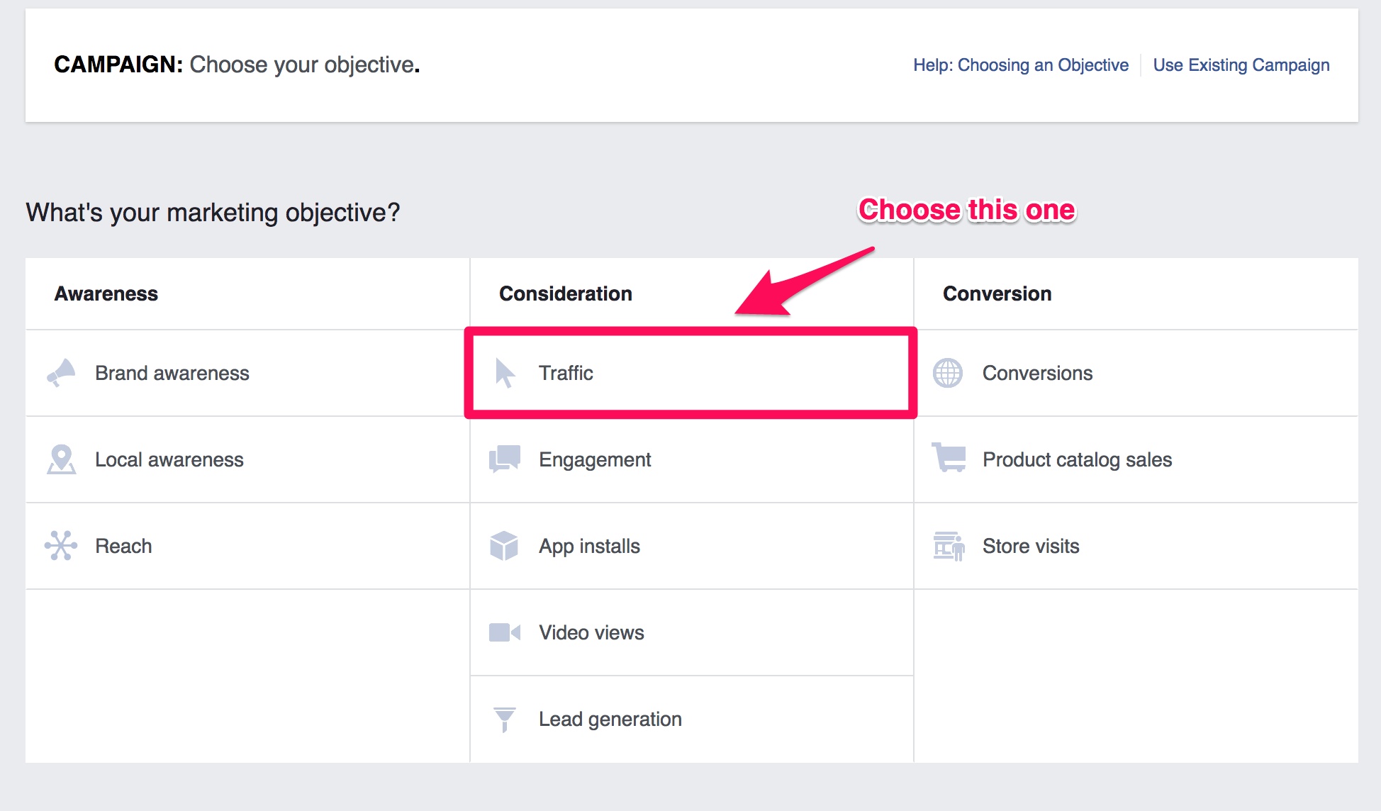 Step #1: Go to Facebook Ads Manager and Choose the Marketing Objective