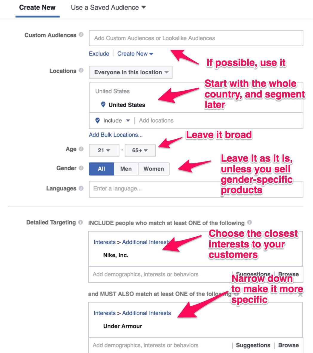 2. Test different audiences: Your customers may not be interests on what you thought they were. Test different interests, jobs, locations, ages, and gender. Keep it close to your personas.