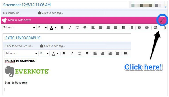To start working on an image click the 'Markup with Skitch' icon: