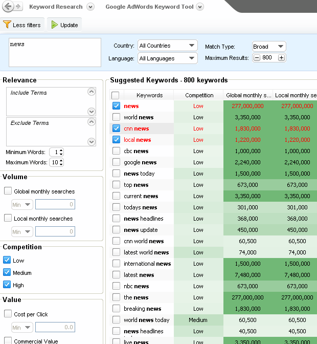 - Integration with Google AdWords suggestions.